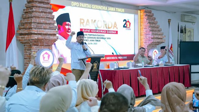DPD Gerindra Jatim menggelar rakorda dengan 38 DPC Gerindra se-Jatim. Rakorda ini menyepakati beberapa hal terkait Pemilu 2024.
