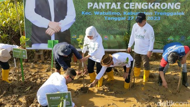 "Hari ini adalah Festival Mangrove keempat, kita menanam mangrove, kita juga tabur benih ikan, kita juga melepasliarkan burung," kata Gubernur Jawa Timur Khofifah Indar Parawansa, Sabtu (27/5/023).