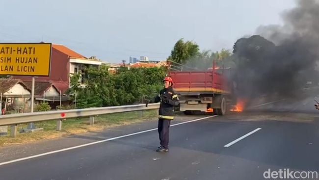 Berdasarkan informasi warga, proses pemadaman truk itu berada di lajur paling kiri. Pengendara diimbau untuk mengambil lajur paling kanan.