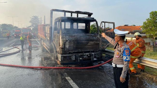 Berdasarkan informasi warga, proses pemadaman truk itu berada di lajur paling kiri. Pengendara diimbau untuk mengambil lajur paling kanan.