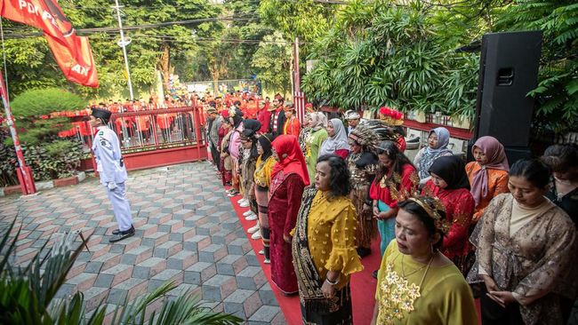Di antara peserta ada yang memakai baju adat istiadat dari berbagai wilayah. Mencerminkan semangat keberagaman budaya nusantara. Sebagian lain memakai seragam PDI Perjuangan.