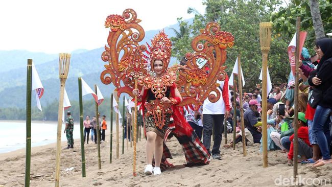 Even Prigi Beach Carnival baru perdana digelar di Pantai Prigi, Trenggalek. Puluhan model berlenggak-lenggok memperagakan aneka kostum unik di catwalk pinggir pantai.