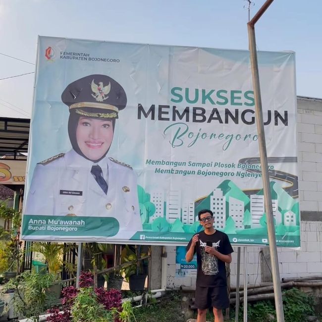 "Mana janji ngayomi lan ngopeni kalau pada akhirnya membunuh mimpi para pemuda pemudi yang ingin mencicipi perguruan tinggi negeri di kotanya sendiri. Terlalu fokus membangun jalan tapi menelantarkan pendidikan. Bukankah itu sama saja dengan jangan biarkan warga bojonegoro menjadi pintar. Bukankah begitu bupatiku?" tambahnya sembari menyodorkan HP ke arah baliho seolah-olah sedang bertanya langsung ke Bupati Anna.
