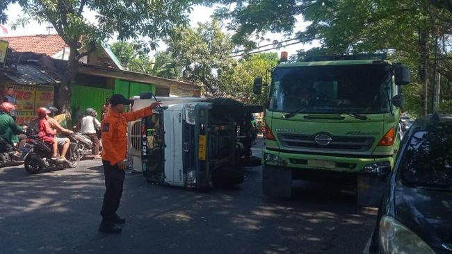 Mobil boks terguling di Jalan Jagir Wonokromo. Peristiwa itu terjadi karena sopir mobil boks muat es kristal bernopol W 9743 UT itu mendadak banting setir gegara menghindari penyeberang jalan.