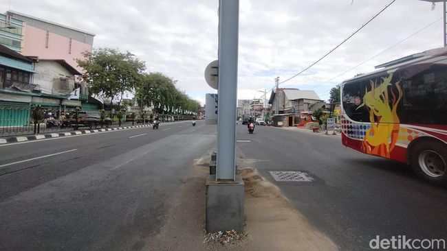 Pengendara yang melintas di sana memang harus ekstra hati-hati. Salah perhitungan sedikit karena terlalu fokus melihat spion, bisa jadi tak melihat ada tiang yang berdiri tengah jalan.
