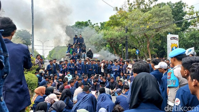 Aksi demo dilakukan ratusan mahasiswa di depan Mapolres Bangkalan. Mereka menuntut pihak kepolisian memperketat keamanan di sekitar Universitas Trunojoyo Madura (UTM), Kecamatan Socah, Bangkalan.