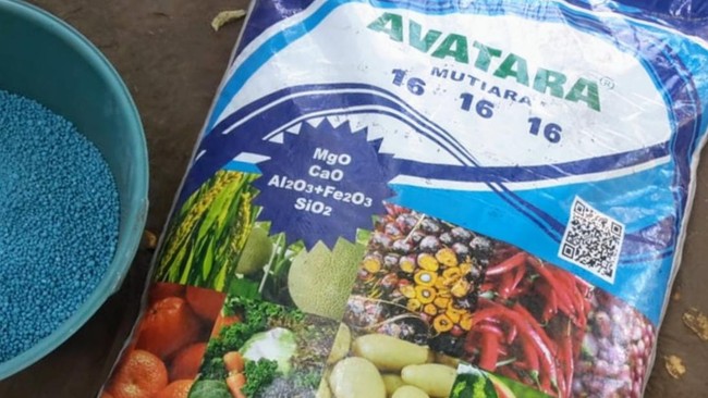 Pupuk yang beredar tampak dikemas dengan keterangan yang diproduksi oleh PT Nividia Pratama dengan label Avatara. Sekilas, pupuk ini tampak asli.