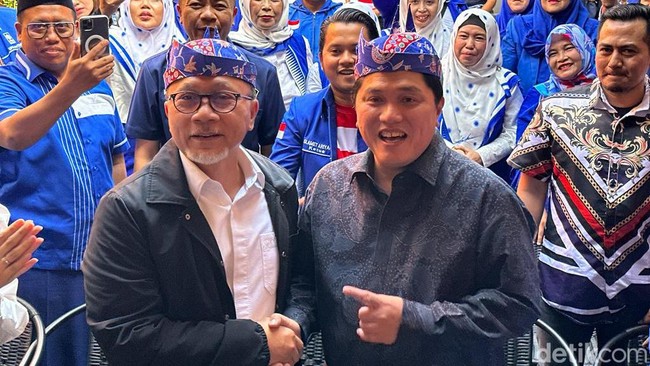 Erick Thohir mengunjungi Kantor DPW PAN Jawa Timur di Surabaya. Dia langsung disambut oleh Ketua Umum PAN Zulkifli Hasan (Zulhas) dan Ketua DPW PAN Jatim Ahmad Riski Sadig.