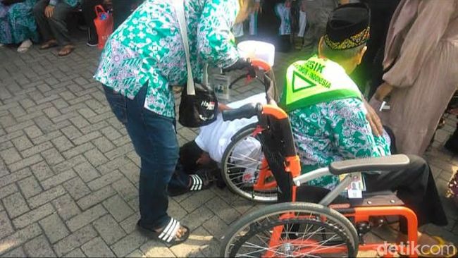 Ratusan jemaah haji kloter 59 terdiri dari kategori lunas tunda, lansia, nomor urut reguler, dan cadangan ini diantar keluarga. Tangis haru dan sujud bakti anak mewarnai keberangkatan mereka.