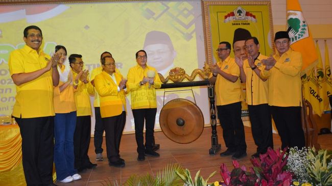 DPD Golkar Jawa Timur menggelar Rapat Kerja Daerah (Rakerda) 2023. Salah satu rekomendasi hasil Rakerda ini harus ada kader Golkar yang maju baik sebagai calon presiden (capres) atau sebagai calon wakil presiden (cawapres).