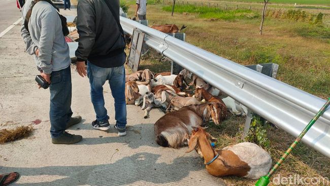 Kecelakaan tunggal menimpa pikap yang mengangkut puluhan kambing kurban di Tol Solo-Ngawi KM 579. Akibat kecelakaan itu, 50 ekor kambing kurban bergelimpangan ke aspal, 2 ekor di antaranya mati. Lantas, berapa kerugian kecelakaan tersebut?