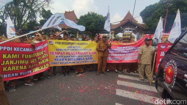 "Kami datang ke Pendopo ini untuk menagih janji ke bupati, pada tahun 2022 kami dijanjikan kenaikan siltap setiap tahunnya. Namun kenyataannya tidak ada kenaikan sama sekali," kata Dian, Selasa (20/6/2023).