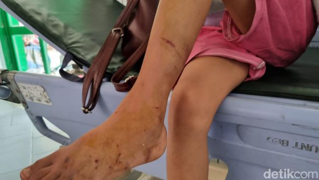 Pantauan detikJatim di RSU dr Soetomo, Q dan N mengalami banyak luka cakaran di kaki sebelah kiri dan terlihat bengkak. Saat kaki sebelah kirinya tersenggol sesuatu, ia merasa kesakitan.