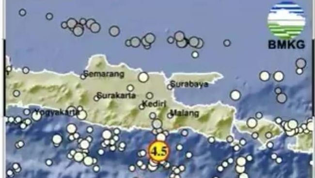 Gempa magnitudo 4,5 mengguncang Malang, Senin (26/6/2023). Gempa tersebut dirasakan sejumlah warga. Sampai sekarang belum ada laporan terkait kerusakan.