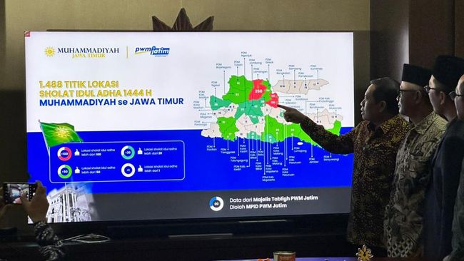 Data yang diterima detikJatim, Muhammadiyah menyiapkan sebanyak 105 titik lokasi penyelenggaraan salat Idul Adha yang tersebar di 31 Pimpinan Cabang Muhammadiyah (PCM). Mulai dari PCM Genteng, Bubutan, Tambaksari, Wonokromo, Karangpilang, Tandes, Gubeng, Pabean Cantian, Tegalsari, Simokerto, Sawahan, Sukolilo, Krembangan, Rungkut, Wiyung, Kenjeran.