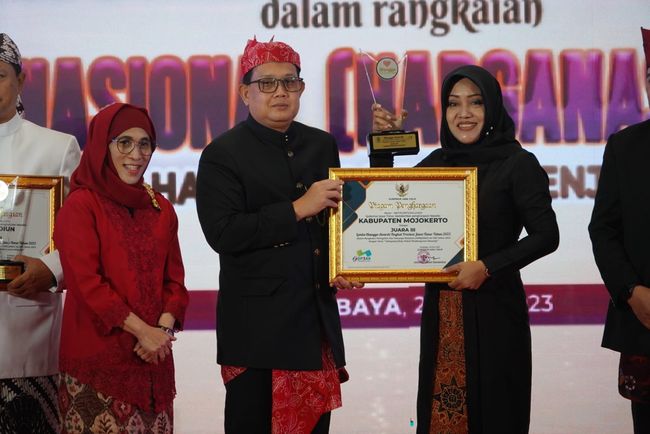 Kabupaten Mojokerto sukses meraih juara 3 Indeks Pembangunan Keluarga (iBANGGA) Award Jatim tahun 2023. Bumi Majapahit menempati posisi tiga terbaik dari 38 kabupaten/kota di Jatim yang peduli dalam pembangunan keluarga.