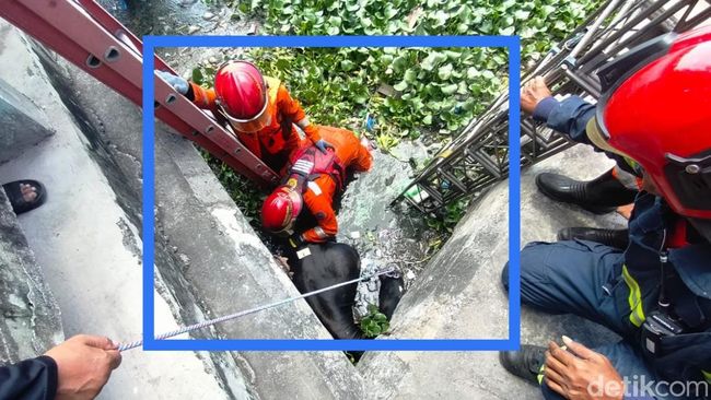 "Sapi dalam kondisi masih hidup, dan ketakutan saat hendak dievakuasi. Kami juga menjaga supaya teman-teman yang melakukan evakuasi aman saat mau meletakkan tali di badan sapi," ujarnya kepada detikJatim, Rabu (28/6/2023).