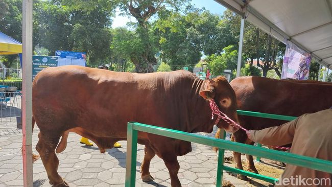 Dari pantauan detikJatim, sapi kurban milik Presiden Jokowi itu tiba di Masjid Al-Akbar sekitar pukul 09.30 WIB. Sapi itu baru diturunkan dari kendaraan sekitar pukul 09.55 WIB.