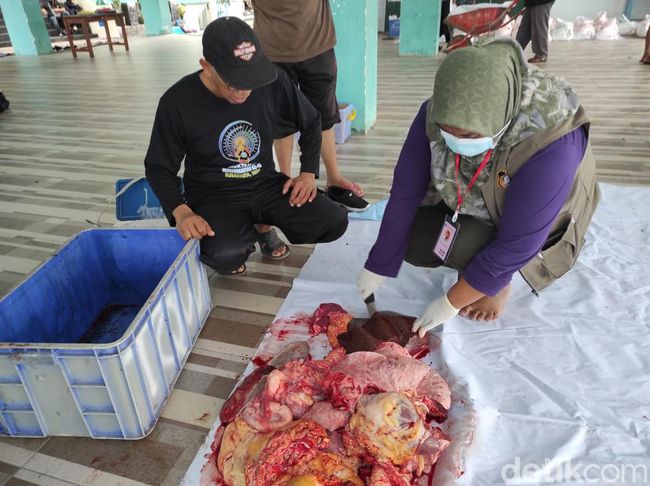 "Untuk hasil pemeriksaan ante mortem, semua hewan kurban sehat. Tapi setelah disembelih, ditemukan penyakit cacing hati dan pneumonia akut pada organ hewan kurban," terangnya.