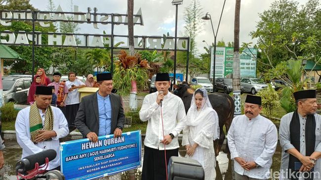 Informasi yang dihimpun detikJatim, ada 3 ekor sapi kurban dari keluarga Cikeas. Masing-masing dari SBY, AHY, dan Edhie Baskoro Yudhoyono (EBY). Sapi selanjutnya disembelih di Rumah Potong Hewan (RPH) sebelum dibagikan ke warga.