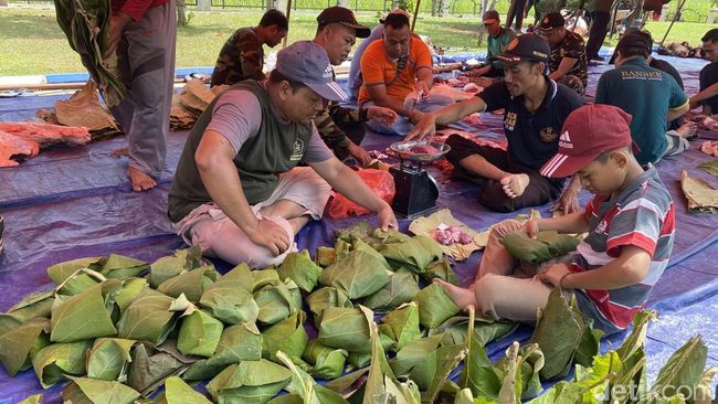 "Untuk mengurangi sampah plasik jadi sengaja kita minta untuk bungkus daging kurban memakai daun jati," kata Kaji Mbing.