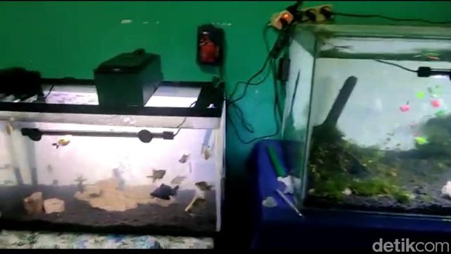 Bukannya lari ke luar rumah, Andik justru mendekati akuarium itu karena khawatir ikan hias koleksinya berhamburan ke luar.