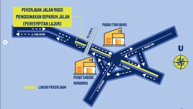 Ia menyebut dari perempatan Jalan Dupak ke arah timur sampai ke Pasar Turi sudah beton semua. Tinggal ke arah barat yang belum dibeton.