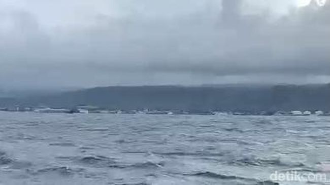 Gelombang tinggi melanda wilayah perairan Banyuwangi menuju Bali, tepatnya di Pelabuhan Ketapang menuju Gilimanuk. Terlihat, sejumlah kapal penyeberangan yang menuju ke Bali atau sebaliknya tampak berayun menerjang ombak saat berlayar pada Minggu (2/7/2023).