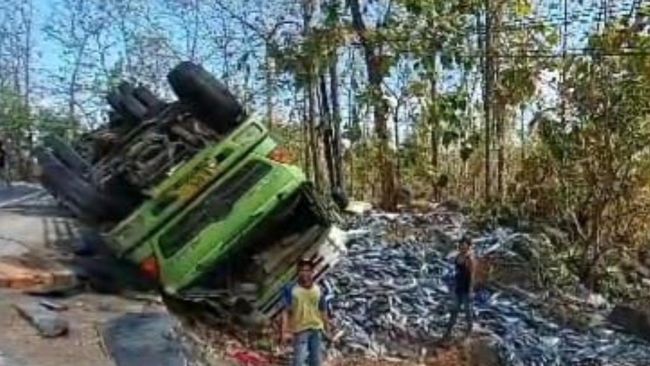 Kawasan hutan Baluran Situbondo tetiba dipenuhi ikan pindang. Rupanya, banyaknya ikan tersebut setelah sebuah truk boks bermuatan ikan pindang seberat sekitar 18 ton terguling. Lho?