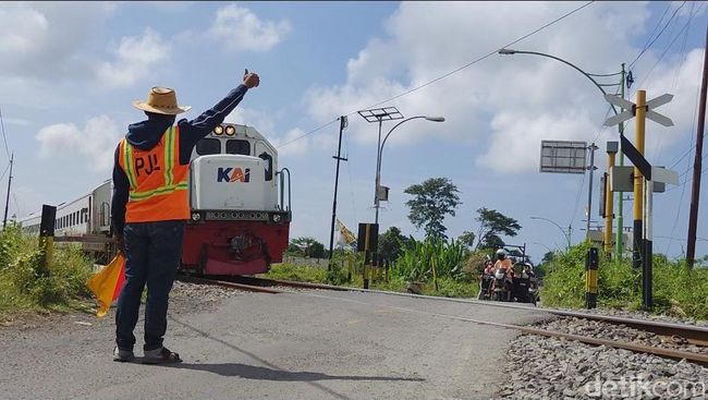 Wahyudi langsung sigap memberi aba-aba para pengendara yang hendak melintas di pelintasan sebidang di Desa Labanasem, Kecamatan Kabat Kabupaten Banyuwangi. Ia memberi aba-aba ke pengendara melalui tangan dan bendera kecilnya bahwa akan ada kereta api (KA) yang hendak melintas.