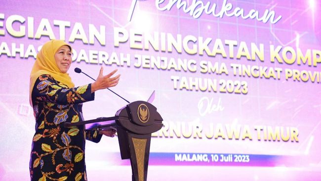 "Jadi ada satu hari dalam seminggu untuk berpakaian dan berbahasa daerah. Sebab bahasa dan budaya adalah dua unsur interaksi sosial yang harus dijaga kelestariannya," kata Khofifah dalam keterangannya, Rabu (12/7/2023).