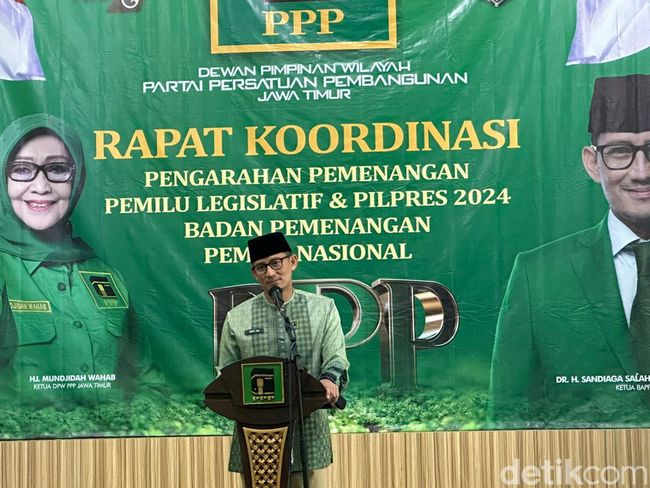 "Saya minta kader kawal Mas Sandiaga kalau turun di Jatim. Ingat Jatim harus jadi kantong suara nasional PPP. Kita kerja, kita mengejar satu kursi satu dapil untuk DPRD Jatim dan 8 kursi DPR RI dari Jatim," tandasnya.