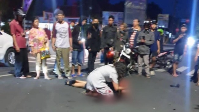 "Tiba-tiba nyelonong sepeda motor jenis Honda Vario, lalu menabrak si suami," terang Iwan, saksi mata yang berada di sekitar lokasi.