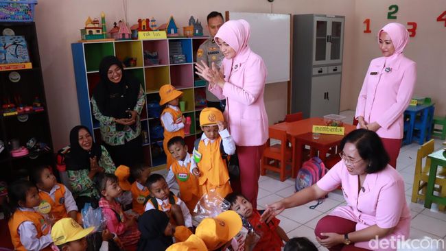 Ketua Bhayangkari Jatim Yesika Toni Harmanto berkunjung ke Bojonegoro. Di kota minyak ini, Yesika bercengkrama dan bermain gembira bersama siswa TK Kemala Bhayangkari.