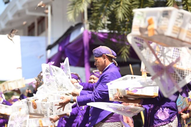 Pada Upacara Manusuk Sima kali ini juga dilakukan pelepasan burung Perkutut sebanyak 1.144 ekor, sebagai ungkapan kebahagiaan. Wali Kota Kediri menjelaskan kenapa burung Perkutut yang dipilih karena burung ini salah satu burung endemik khas Jawa Timur. Dulu burung Perkutut banyak diburu dan ditembak.