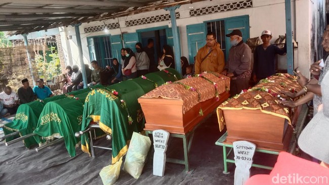 "Lima jenazah di makamkan di TPU Dusun Beciro Wetan, dua jenazah Ibu Sumiyowati dan anaknya bernama Sutria Mingsih yang dimasukkan dalam peti dimakamkan satu liang," kata Faisal.