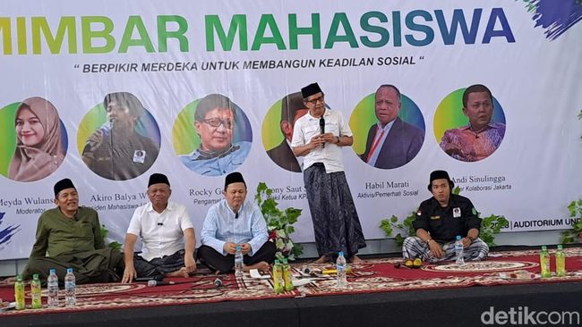 Dalam mimbar ini, Rocky menceritakan dampak tudingan usai dirinya dianggap menghina Presiden Jokowi. Rocky Gerung mengaku tiba-tiba tergabung ke dalam puluhan grup baru WA. Setelah ada di grup itu, Rocky Gerung dihujat.