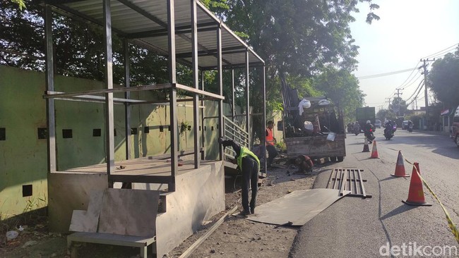 "Kami hanya membuat kerangka halte bus Trans Jatim ini. Pemasangan kerangka dimulai di wilayah Sidoarjo barat," kata Agus di lokasi, Sabtu (5/8/2023).