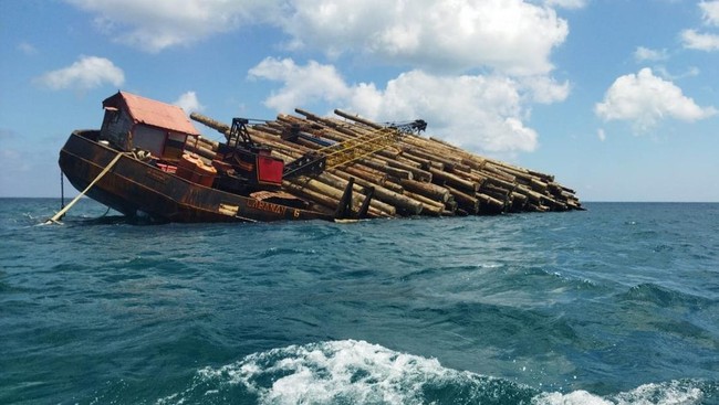 Cuaca buruk di Perairan Pulau Masalembu, Sumenep, Madura, membuat kapal tongkang bermuatan ratusan batang kayu kandas. Kapal dihantam ombak besar. Meski begitu tidak ada korban jiwa.