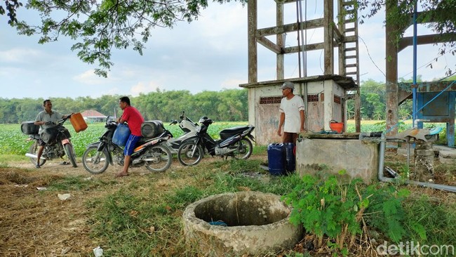 "Ngangsu angel banyu kawit Juli wingi (ambil air, air sulit sejak Juli kemarin). Warga ya gantian ambil air di sumur punden niki (ini). Semua warga dusun insyaallah di sini ambil airnya. Ya sekitar 1 kilometer hingga 2 kilometer dari rumah. Bahkan ada yang ambil air di Desa Sambongrejo atau, Jabung," tutur Mashadi warga setempat, Selasa (8/8/2023).