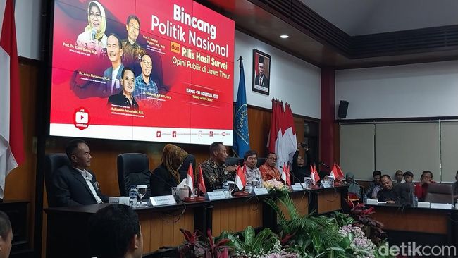 "Memang survei pilpres itu Prabowo dan Ganjar paling unggul. Cuman di Jawa Timur ini yang membedakan survei dengan nasional adalah Anies jauh terbelakang dibandingkan dua calon itu. Padahal kalau survei nasional jaraknya nggak terlalu jauh," katanya.
