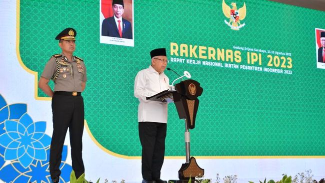 Wakil Presiden RI KH Maruf Amin membuka Rakernas Ikatan Pesantren Indonesia 2023 di Surabaya, Jumat (11/8). Dalam sambutannya, ia mengutip Undang-Undang No 18 Tahun 2019 bahwa pesantren memiliki fungsi pendidikan, dakwah dan pemberdayaan masyarakat.