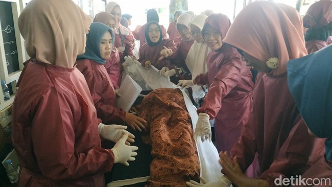 Pantauan detikJatim, workshop yang diselenggarakan di aula pertemuan Jl HOS Cokroaminoto itu diikuti puluhan relawan perempuan. Mereka tampak antusias mengikuti rangkaian pelatihan. Tidak hanya teori, mereka juga memeragakan tata cara pemulasaraan jenazah dengan media boneka.