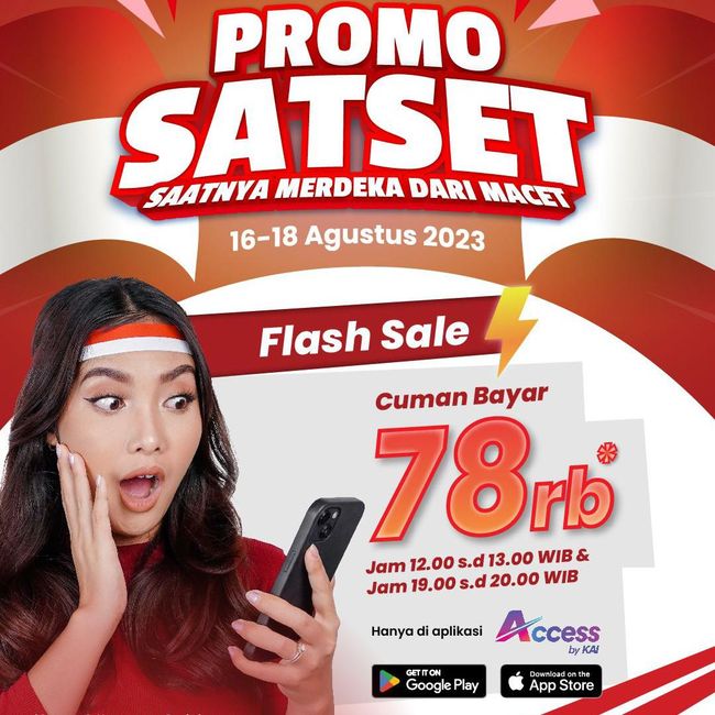 Ada promo tiket kereta api (KA) spesial HUT RI. Namanya Promo Satset (Saatnya Merdeka dari Macet).