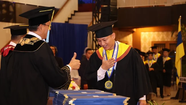 "Tidak semua masyarakat bisa menikmati pendidikan tinggi seperti kita, gunakan waktu belajar di dalam maupun di luar kelas dan dharmabaktikan ilmu untuk sebesar-besarnya pembangunan tanah air dan bangsa," pungkasnya.