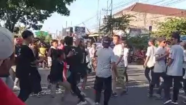 "Kok tiba-tiba lempar-lempar yang pakai baju hitam itu nggak tahu mereka dari desa mana. Tadinya ya jalan gitu seperti gerak jalan teriak kiri-kiri mungkin ada yang mengolok terus tersinggung," terang Nasripah, Minggu (13/8/2023).