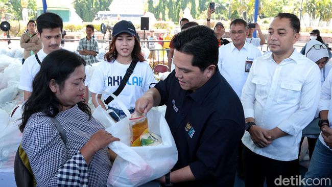 "Bapak Menteri Erick Thohir kesini menjalankan perintah Pak Jokowi (Joko Widodo) untuk memberikan pasar murah. Matur nuwun sanget (terima kasih banyak) Pak Menteri karena rakyat Surabaya senang," kata Eri.