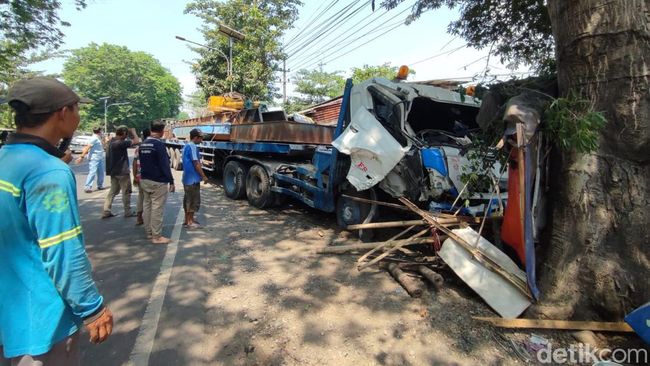 Kabin truk trailer ringsek setelah menabrak warung nasi milik Irnawati dan pohon besar di bahu jalan. Laju truk baru terhenti setelah menabrak pohon tersebut. Beruntung pemilik warung tak menjadi korban. Bahron mengaku sempat terjebit di dalam ruang kemudi sekitar 20 menit.
