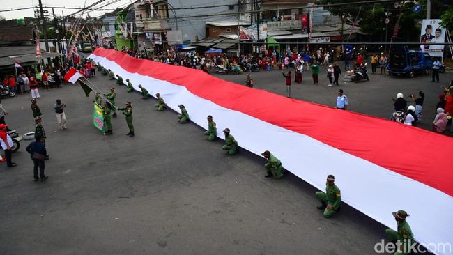 "Sementara panjang bendera 78 meter merupakan wujud hari kemerdekaan ke-78 Republik Indonesia. Ini pertama kalinya. Kami unsur Linmas bersinergi dengan TNI dan Polri dalam pelaksanaan kirab ini," ungkap Miswadi kepada wartawan, Kamis (17/8/2023).