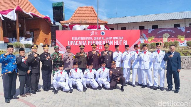 Masih ingat dengan Pondok Pesantren Baitul Quran Al-Jahra, Magetan yang santriwatinya viral membawa airsoft gun? Upacara HUT ke-78 RI di ponpes itu dipimpin Deputi Badan Nasional Penanggulangan Terorisme (BNPT).